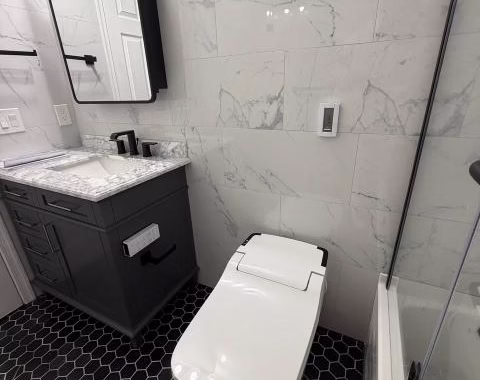 Electrical work was completed to code standards, including the installation of a dedicated outlet for the bidet-equipped toilet. Proper electrical planning ensures safety, functionality, and long-term reliability.