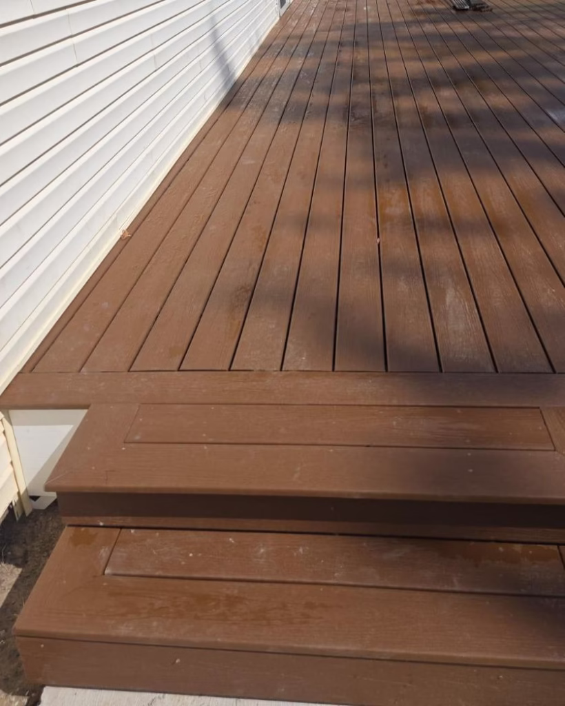 The result of this project is a stunning, expansive deck that dramatically improves the home’s outdoor functionality. The homeowner now has ample space for entertaining, dining, lounging, or simply enjoying the outdoors. The composite boards ensure the deck will maintain its beauty and structural integrity for years with minimal maintenance. The new stairs and concrete landings improve accessibility and safety, while the clean demolition and framing work provide a rock-solid foundation for the entire structure.